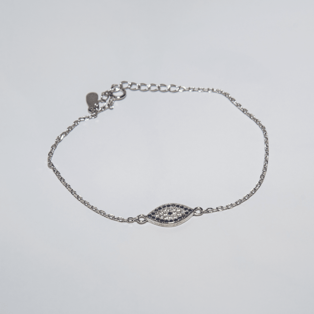 Ασημένιο βραχιόλι μάτι με λευκά και μπλε ζιργκόν