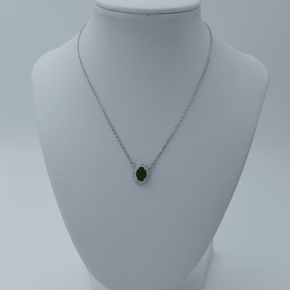 Ασημένιο κολιέ με πράσινη πέτρα διακοσμημένο με λευκά μικρά ζιργκόν